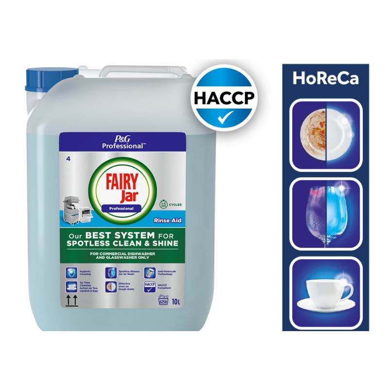 Koncentrat nabłyszczacza z serii Jar P&G ProfiLine przeznaczony jest do mycia naczyń w zmywarkach profesjonalnych z krótkim cyklem (1-5 min) i automatycznym dozowaniem. Płyn nabłyszczający Jar P&G ProfiLine zawiera polimery w postaci skoncentrowanej substancji nabłyszczającej, która pomaga zapobiegać tworzeniu się i pojawianiu się kropel i smug na powierzchniach, a jednocześnie zapewnia połysk, którego oczekujesz Ty i Twoi klienci. Stosuj do płukania, aby uzyskać lśniące i szybko schnące naczynia.