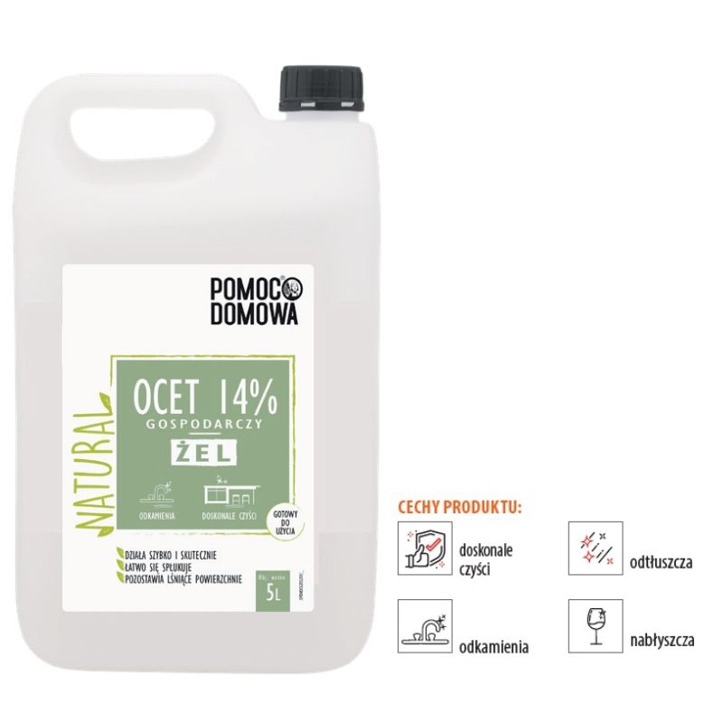 Ocet 14% Gospodarczy Skoncentrowany w opakowaniu 5L w formie żelu, to najbardziej wszechstronny, naturalny środek czyszczący, który powinien się znaleźć w każdym domu. Dzięki zwiększonemu stężeniu nawet przy codziennym użyciu wystarczy na dłużej.